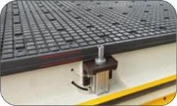 Стол и упоры Вакуумный стол выполнен из высокопрочного материала увеличенной толщины. Такой стол выдерживает максимальные нагрузки, высокую точность по диагоналям. По бокам стола установлены пневматические упоры 6 шт (2 фронтальных + 4 боковых) для базирования материала в точке нуля. |