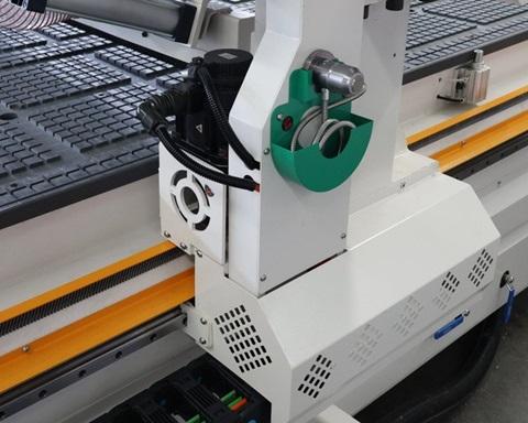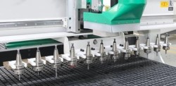 Автоматический магазин инструментов устанавливается непосредственно на поперечной балке подвижного портала, что позволяет производить быструю смену инструмента. Конструкция магазина предусматривает установку в него различных инструментов и агрегатов, дисковых пил, комбинированного инструмента с большим размером и весом, что позволяет быстро переходить на другой вид продукции без необходимости переоснащать центр.