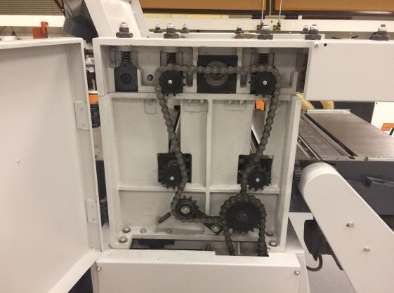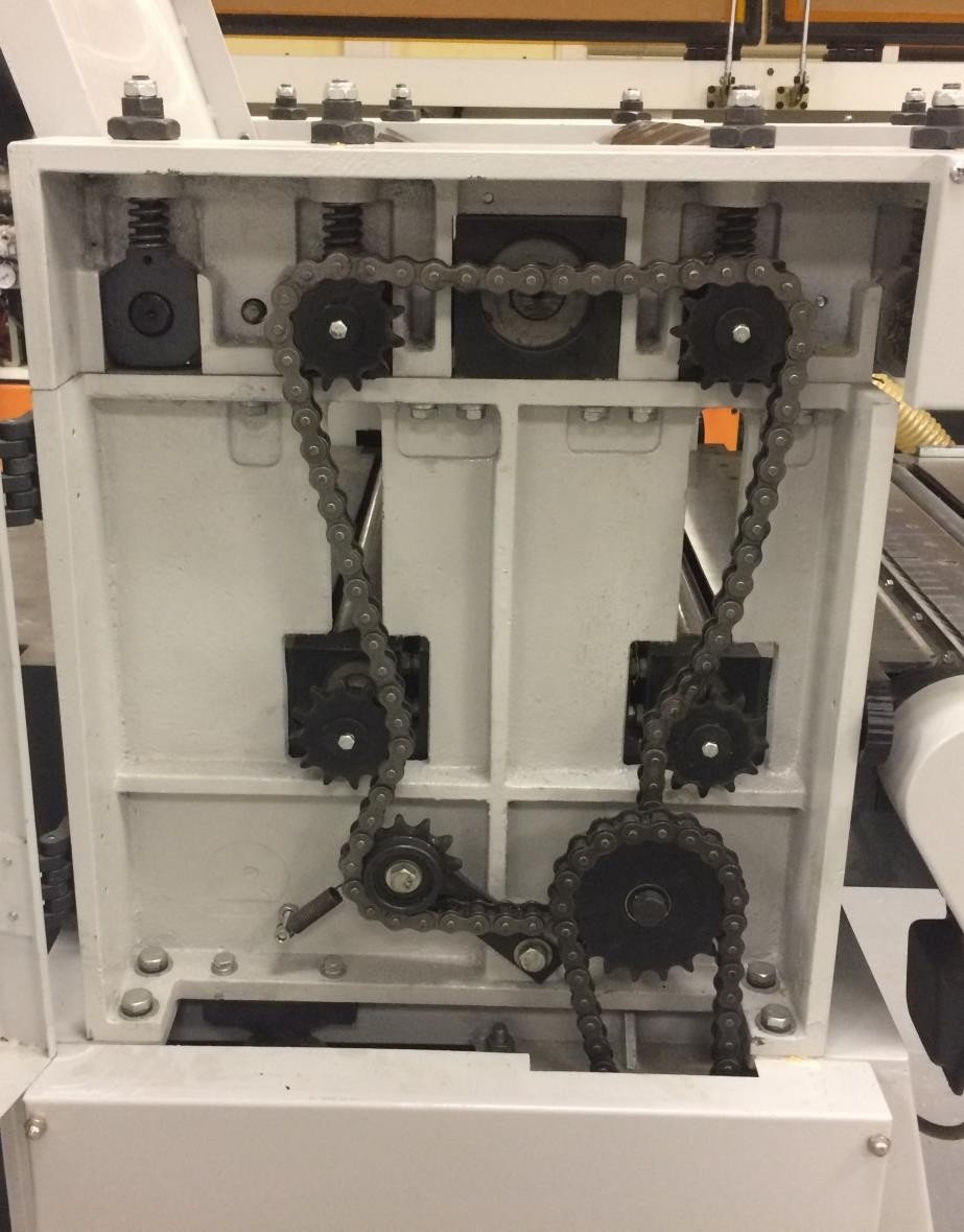 НИЖНИЕ ПОДАЮЩИЕ ВАЛЬЦЫ На рабочем столе расположены четыре ролика, обеспечивающие лучшее скольжение заготовки. Два ролика расположенные под верхним валом - приводные. В зависимости от типа заготовки ролики могут быть настроены на нужный вылет из стола. |