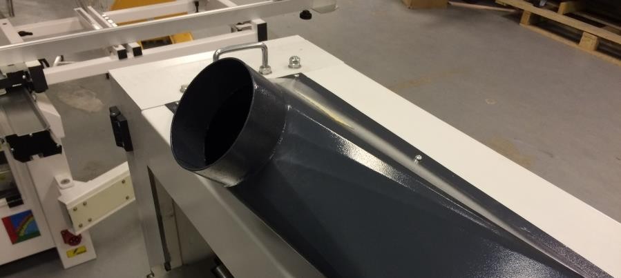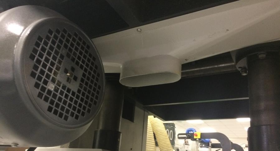 ЭКСГАУСТЕРНЫЕ ВОРОНКИ Выброс стружки осуществляется через эксгаустерные воронки. Фото сверху – аспирационный патрубок от верхнего (рейсмусового) ножевого вала. Фото снизу – аспирационный патрубок от нижнего (фуговального) ножевого вала. |