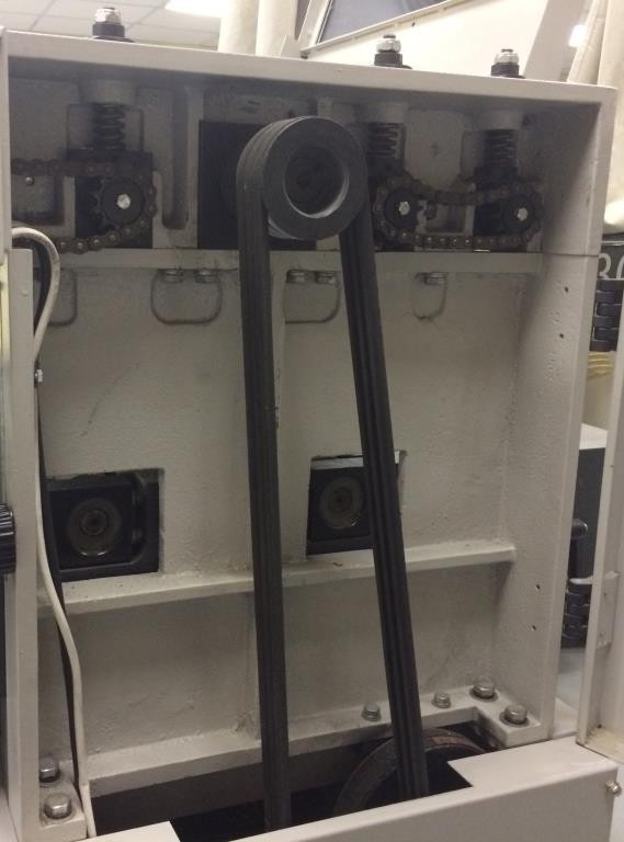 ВЕРХНИЙ (РЕЙСМУСОВЫЙ) НОЖЕВОЙ ВАЛ Привод рейсмусового вала, верхних и нижних подающих вальцов осуществляется от мощного двигателя посредством клиноременной передачи и цепей. |
