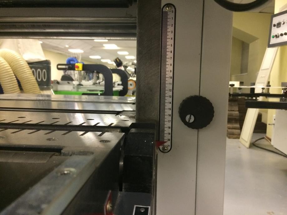 НИЖНИЙ (ФУГОВАЛЬНЫЙ) НОЖЕВОЙ ВАЛ Привод нижнего ножевого вала осуществляется от отдельного двигателя. Настройка глубины съема осуществляется с помощью винта на передней части стола. Отображение размера по миллиметровой шкале. |