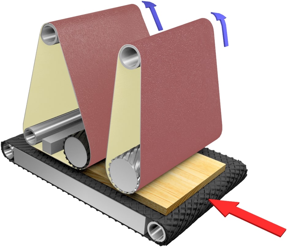Значительно повышает качество обработки, т.к. осциллирующая лента перемещается одновременно в продольном и поперечном направлении. |