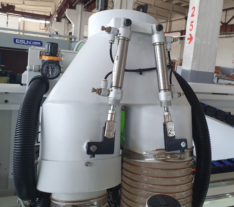 Фрезерная и сверлильные головы оснащены аспирационными кожухами с системой шиберных задвижек, что позволяет более эффективно удалять стружку из зоны фрезерования и присадки.