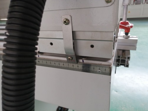 ЛИНЕЙКА НА СТАНИНЕ СТАНКА Настройка расстояния между шпинделями выставляется при помощи линейки расположенной на станине станка. |