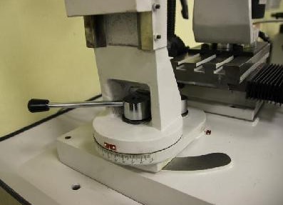 ЗАТОЧНОЙ УЗЕЛ С РЕГУЛИРОВКОЙ ПОВОРОТА ЗАТОЧНОЙ ГОЛОВКИ И ПОДЪЕМОМ/ОПУСКАНИЕМ ЗАТОЧНОЙ ГОЛОВКИ Регулировка заточной головки на заданный угол имеет градуированную шкалу на 360 град, что позволяет затачивать пилы со скошенными зубьями и пилы с более сложной трапециевидной формой зубьев.
